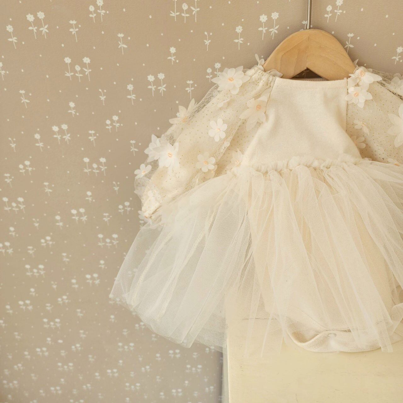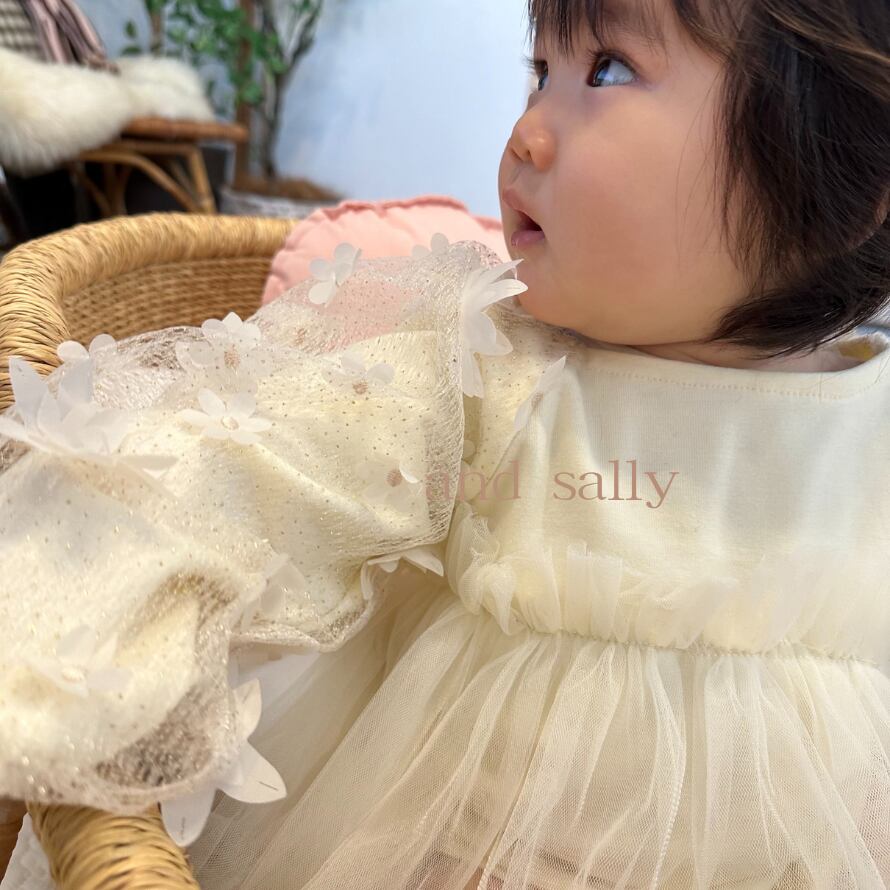 袖についたお花がとってもかわいい一着となります♪